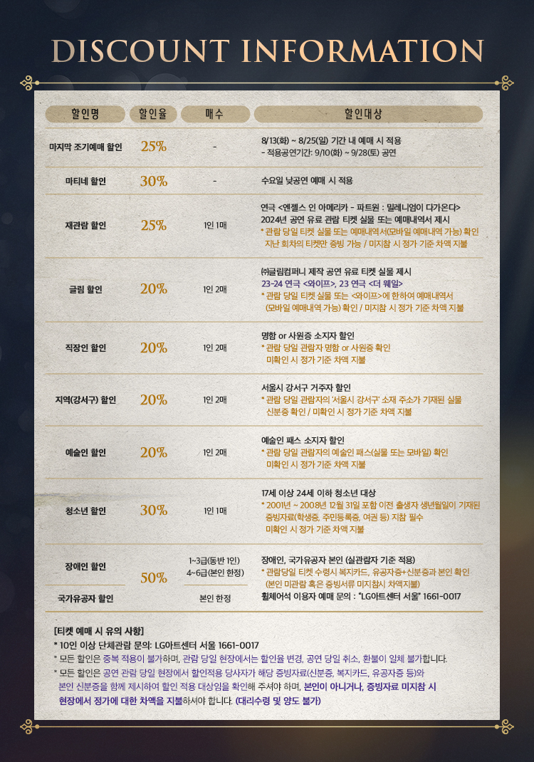 공연 기간 : 2024년 8월 6일 (화) ~ 9월 28일 (토)