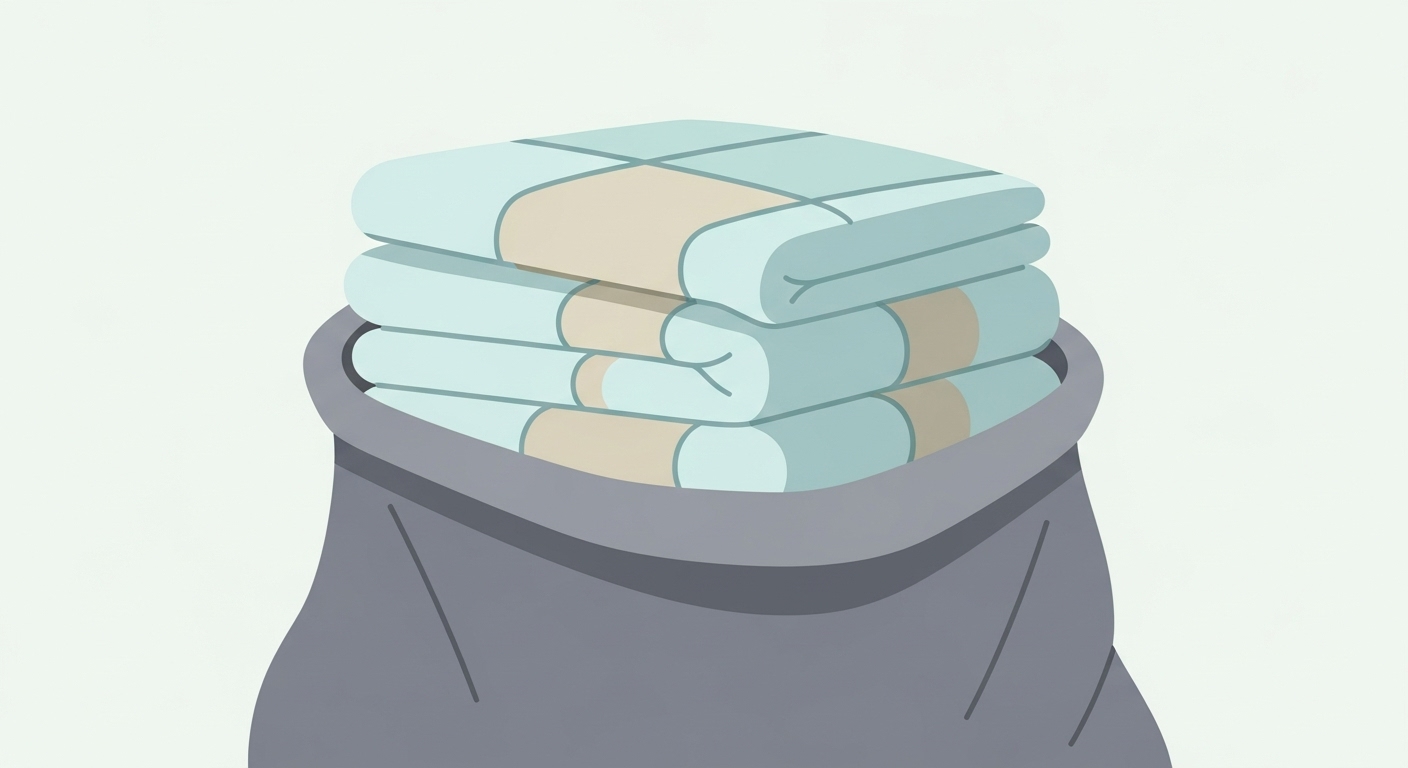 진공 압축팩을 사용하면 이불 부피가 최대 70% 이상 줄어들어 종량제 봉투에 담기가 훨씬 쉬워집니다.